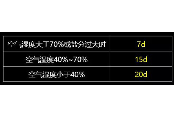 (4)穿束后至孔道灌漿完成應控制在下列時間以內,否則應對預應力筋采取銹措施: